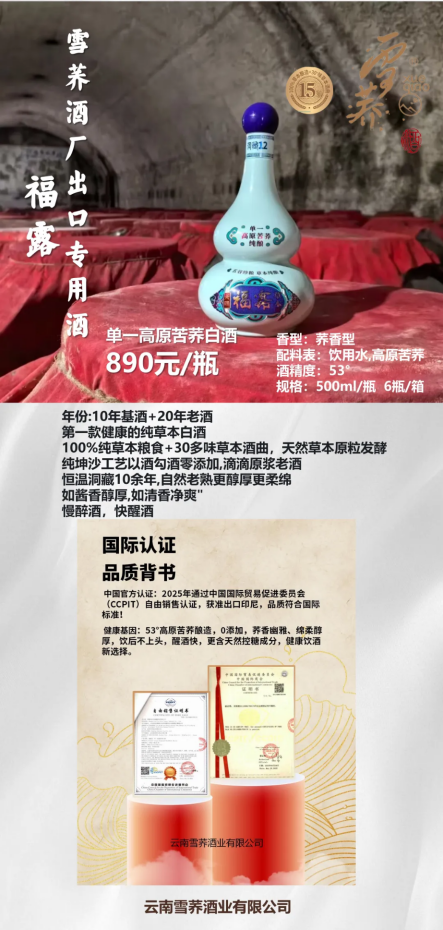 10 月 16 日,工信部在经典产业高质量发展研讨会上明确提出,传统产业升级需坚守 “文化根脉” 与 “创新内核” 双重底线:既要守护古法工艺的活态传承,让老技艺焕发新活力;更要精准对接现代消费需求,以差异化价值突围。在云南滇池边上,被誉为 “云南第一窖” 的雪荞酒业,正以 “单一原料为基、古法工艺为骨、健康创新为魂” 的实践,为白酒这一经典产业的转型提供了生动范本 —— 其品质不仅赢得大湾区运动养生圈层与精密制造企业的深度认可,更以 “福露” 为海外品牌,携单一高原苦荞纯酿走进印尼市场,成为连接海外游子与家乡味道的情感纽带。