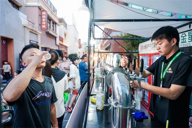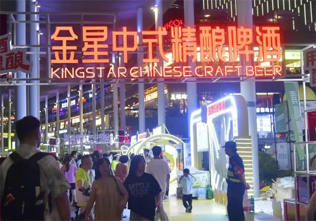 当晚8时,在管城区商都阜民里联动顺城街、阜民里、北庆里三条文旅街区,数万人的疯狂消费唤醒了老城的记忆。金星中式精酿啤酒“金星毛尖”、“茉莉花茶”、“龙井绿茶”、“铁观音茶”等茶啤以及“冰糖葫芦”和“冰镇西瓜”国潮新饮等13个中式精酿产品成为数万人争相品鉴的大网红。